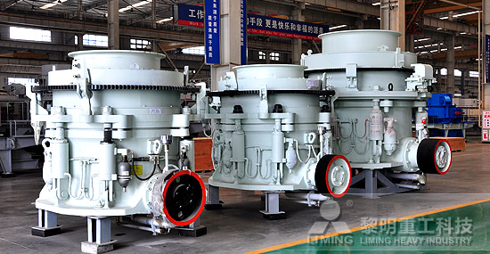 2、圓錐式破碎機:圓錐破可以處理≤560mm的石材,它的生產能力為30-660t/h,適合處理中等硬度以上的物料,其采用的是擠壓式破碎,動錐在偏心軸套的迫動下做旋轉擺動,動錐靠近靜錐的區段即成為破碎腔,物料受到動錐和靜錐的多次擠壓和撞擊而破碎。