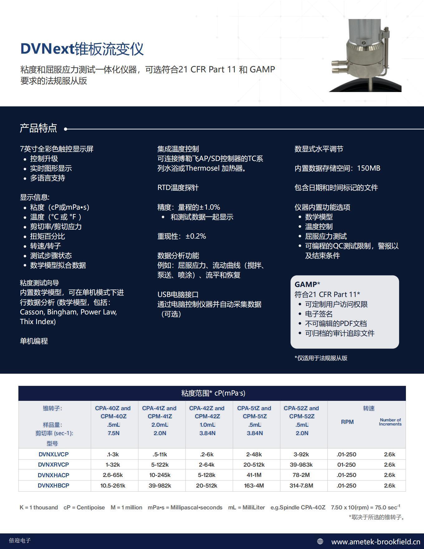 | 粘度范圍 cP(mPa·s) 取決于所選機(jī)型和錐轉(zhuǎn)子 | |||||