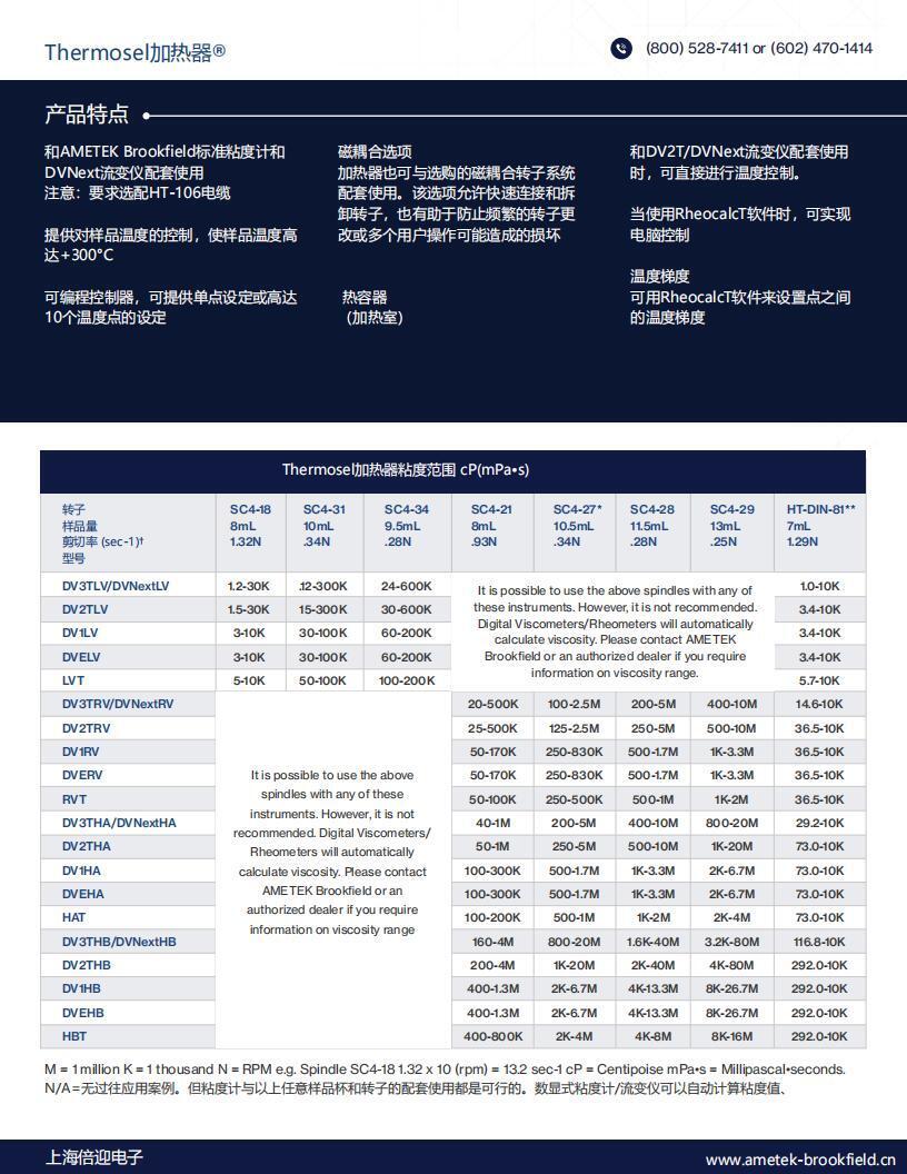 · 可與Brookfield標準粘度計和DVNext流變儀一起使用